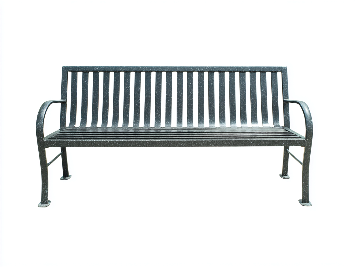 Fabriqué entièrement en métal avec une finition gris foncé, ce banc présente une surface texturée résistante et une structure rigide. Le traitement de surface contribue à une bonne tenue face aux conditions extérieures courantes et à une utilisation régulière en plein air.