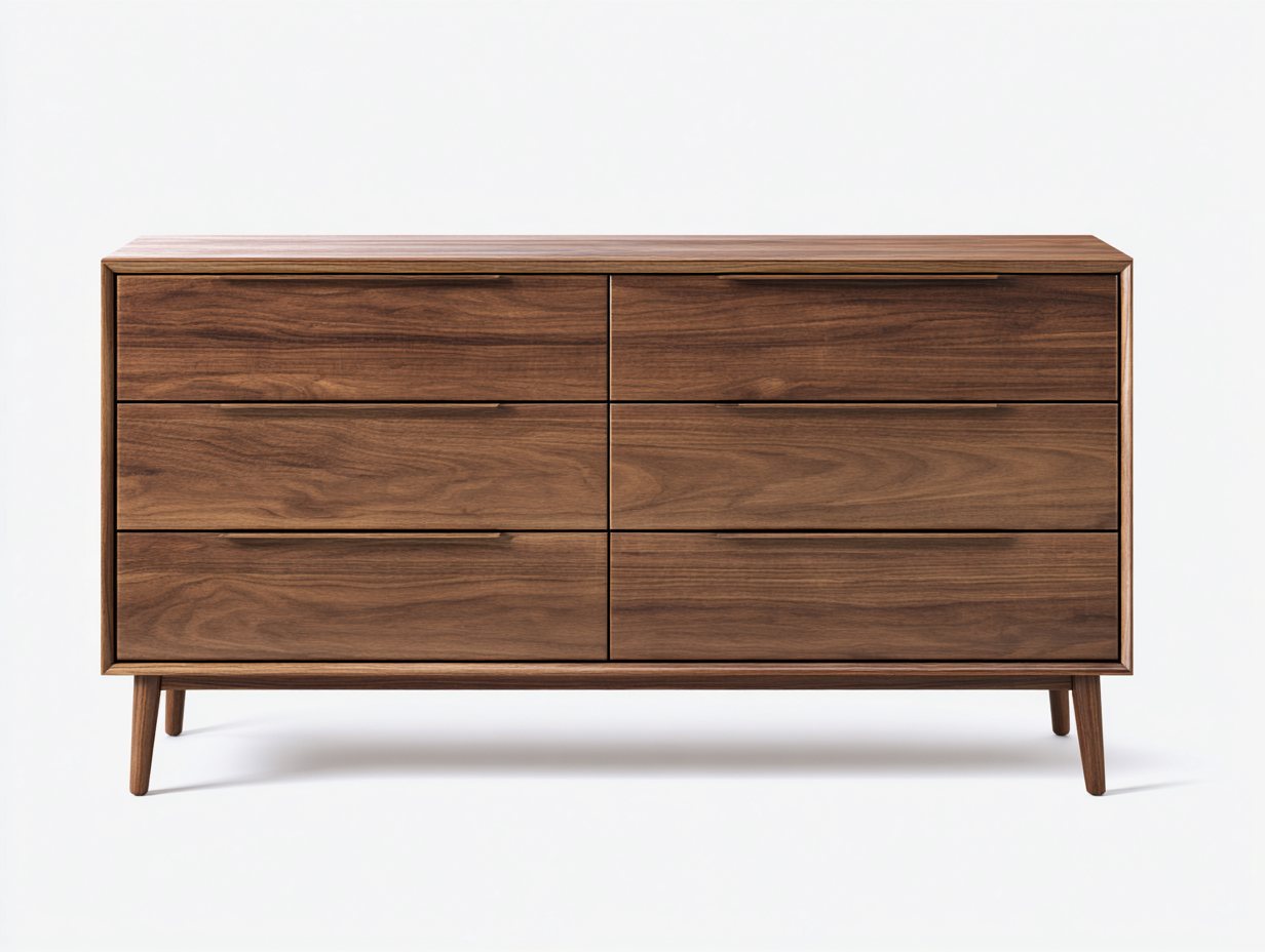 Fabriquée en bois massif avec une finition marron noyer, cette commode met en valeur un veinage naturel profond et homogène. La surface est soigneusement travaillée pour garantir une bonne résistance à l'usage quotidien, tandis que la structure robuste assure une stabilité durable.